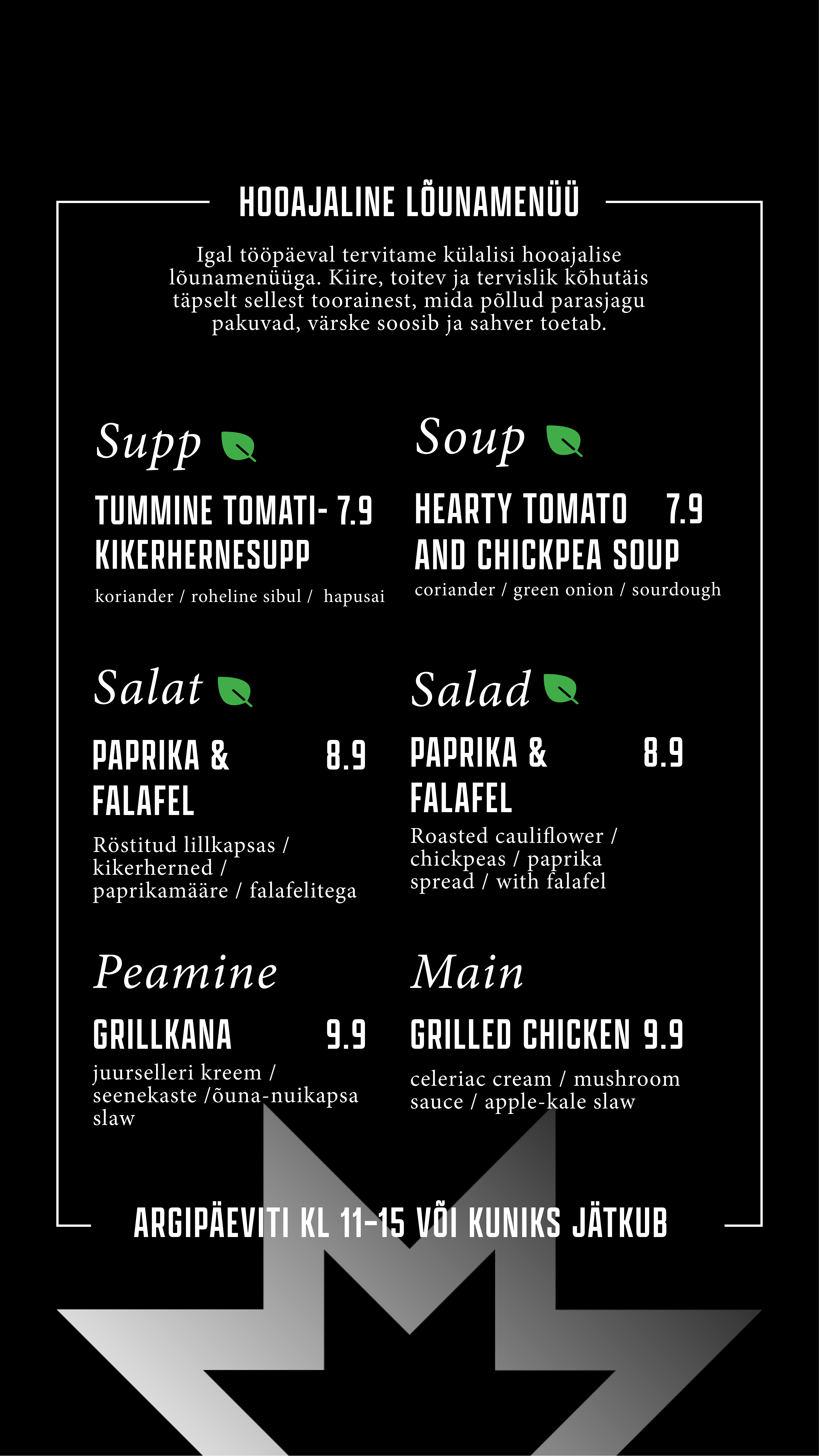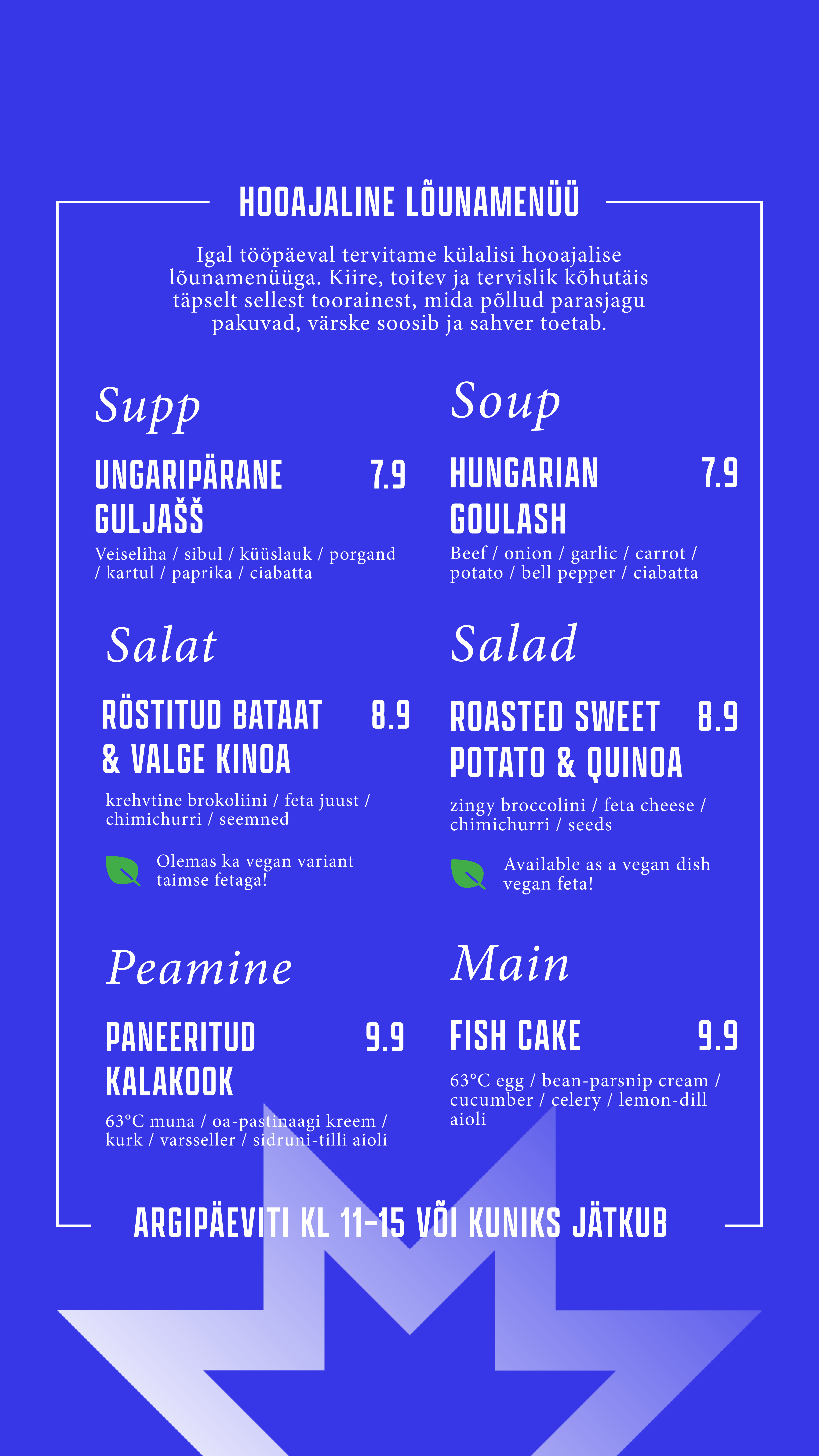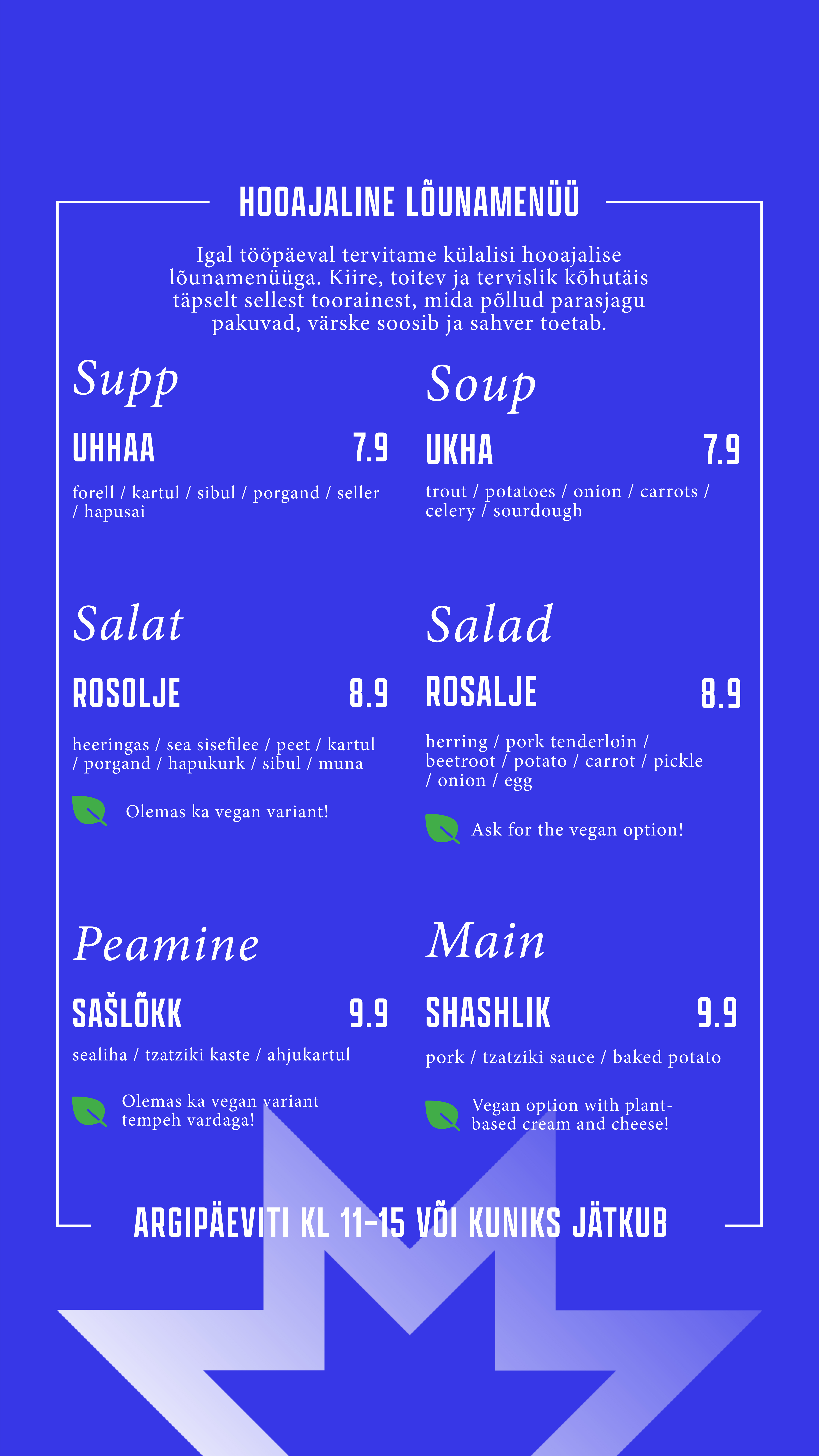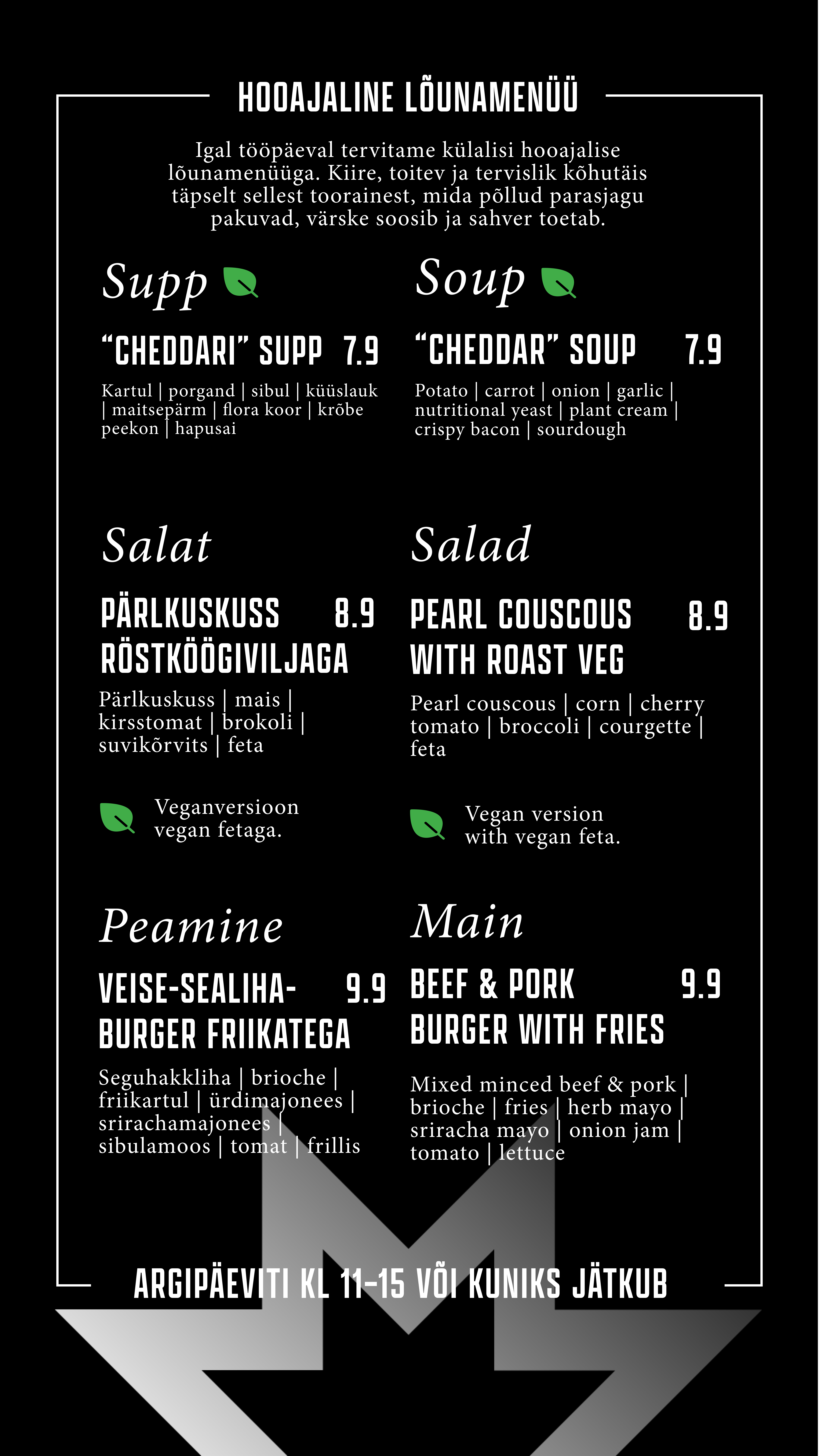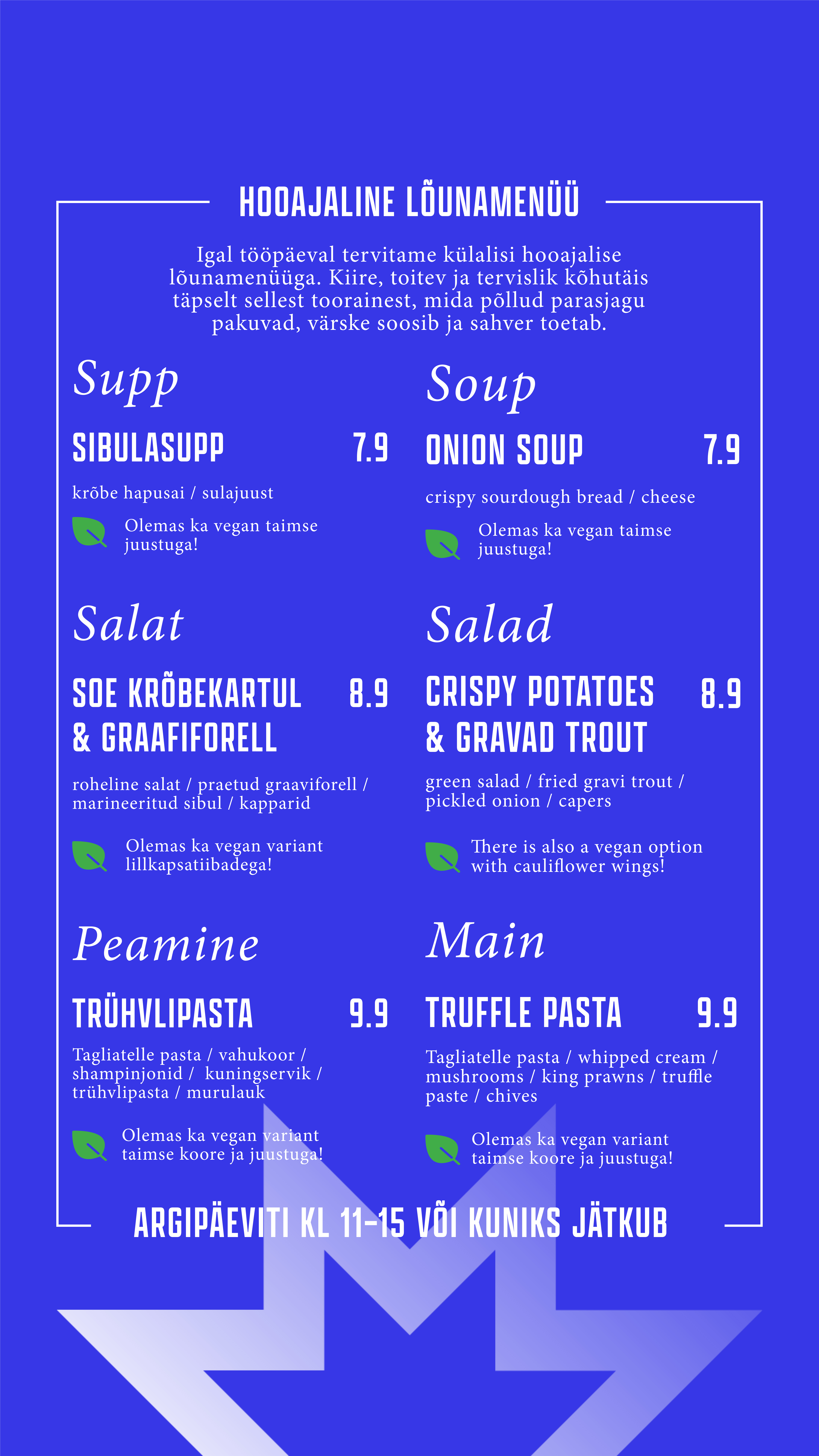 Õueala on justkui loomulik pikendus meie kohvikule – sama menüü, sama hea vibe, lihtsalt rohelisema vaatega. Astu läbi, vali endale meeliskoht, kas varjus või päikeselaigus, ning naudi mõnusat olemist keset linnadžunglit.